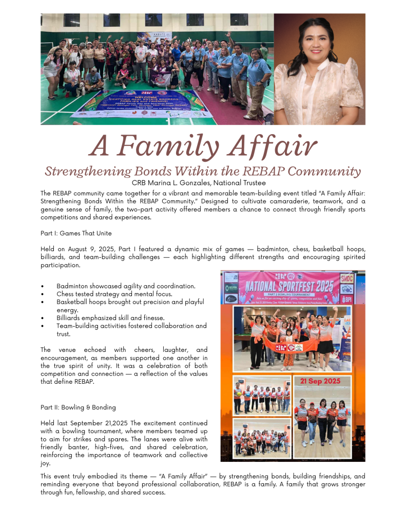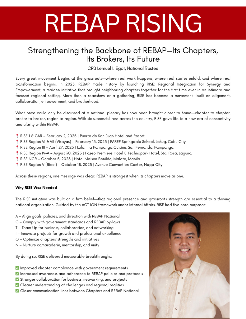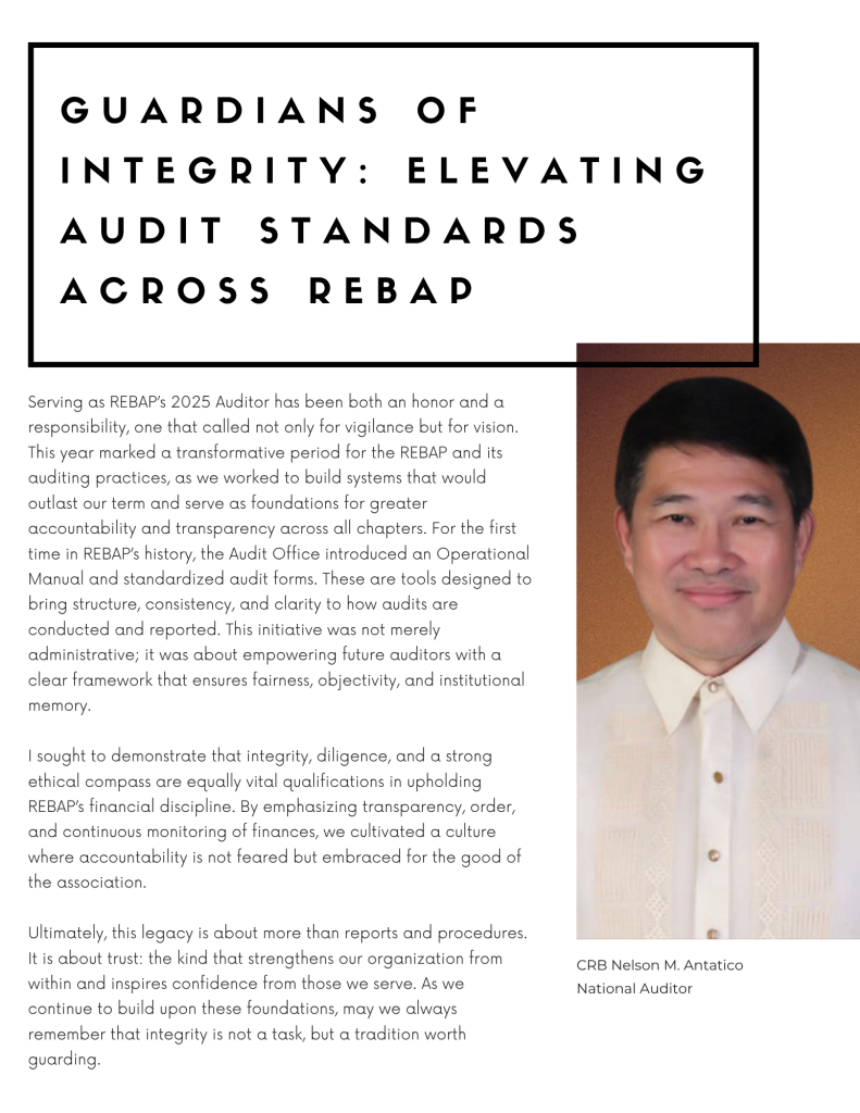 Preview: The 2025 REBAP Legacy Book 07 Nov 2025 National National Activities, News & Events No comment Note: Limited copies of the complete and printed version will be released on December 27, 2025.