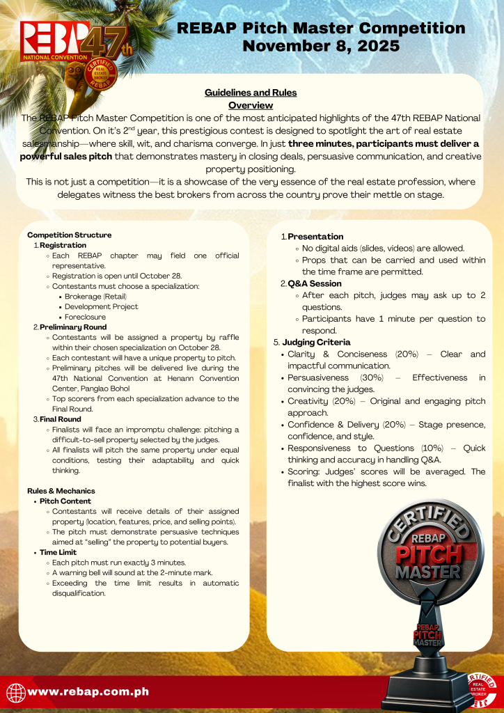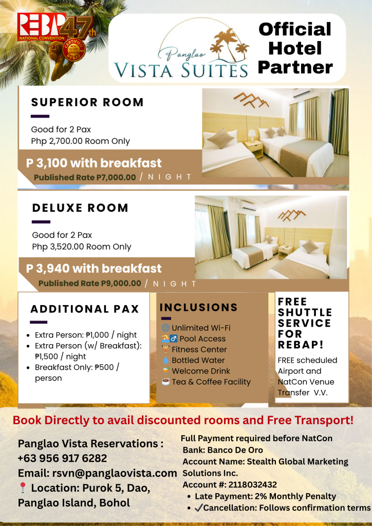 Join us for 3 POWER-PACKED DAYS of learning, networking, and fellowship at the beautiful Panglao, Bohol! Co-hosted by REBAP Bohol Chapter