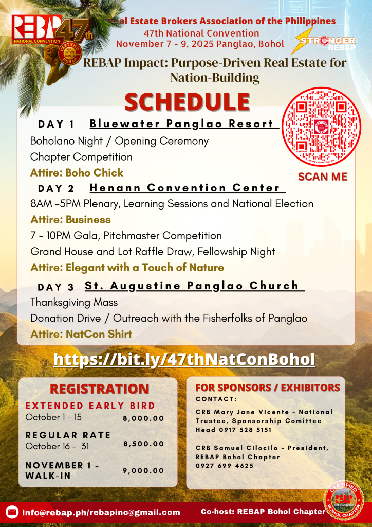 Join us for 3 POWER-PACKED DAYS of learning, networking, and fellowship at the beautiful Panglao, Bohol! Co-hosted by REBAP Bohol Chapter